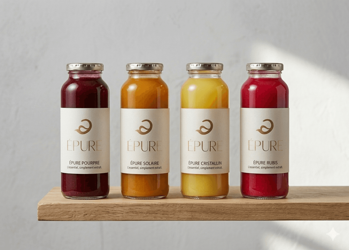 Épure Rien n'est ajouté, tout est révélé. Épure redéfinit le geste du soin intérieur par l'extraction à froid : un respect absolu de la structure vivante des végétaux. Pas d'artifice, pas de compromis, juste la puissance brute des couleurs et des saveurs originelles. L’essentiel, simplement extrait. Épure Pourpre : La force de la terre et l'élégance d'une racine profonde. Épure Solaire : Le feu protecteur d'un éveil vif et lumineux. Épure Cristallin : La clarté d'esprit dans une pureté matinale. Épure Rubis : La vibration d'une passion florale et délicate.